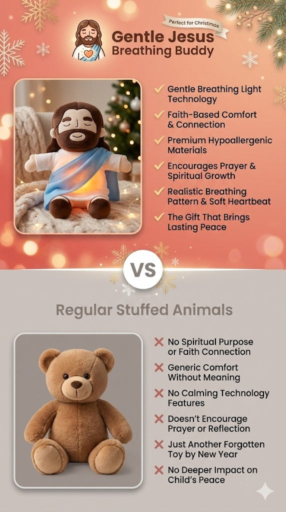 • Okay so I bought this for my son but honestly? I use it too when I'm stressed. There's something about holding Jesus close and feeling Him breathe that just... stops the spiral and reminds me I'm not alone. My son calls it his 'Jesus buddy' and takes it everywhere - car rides, sleepovers, even brought it to Sunday school. It's become part of his faith journey. We're obsessed.